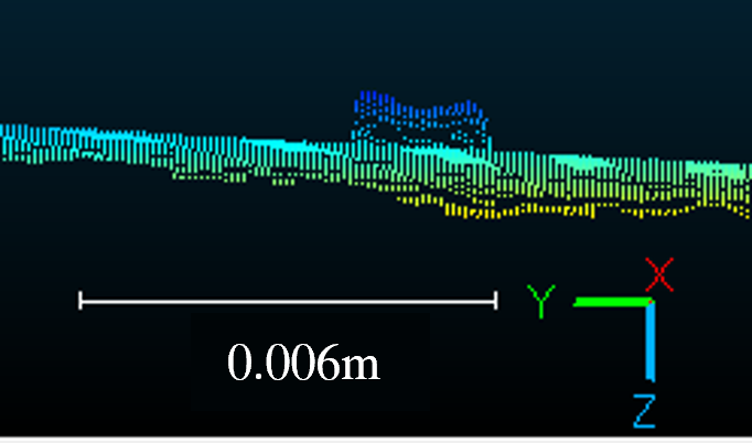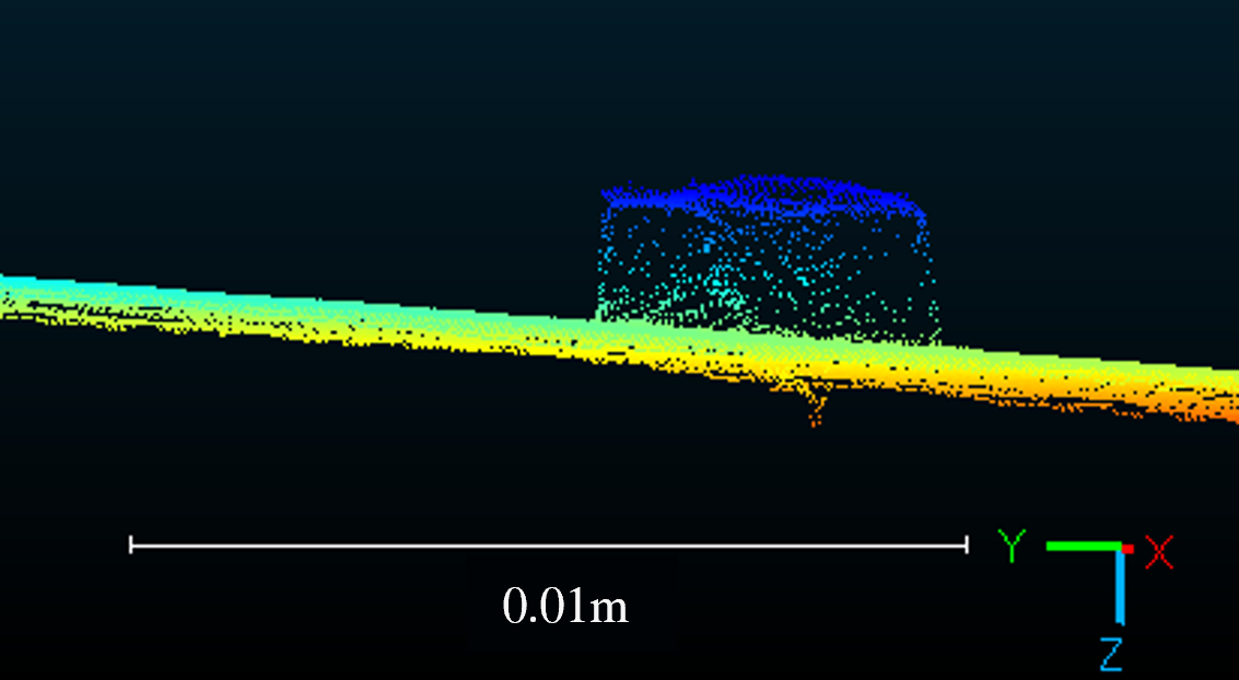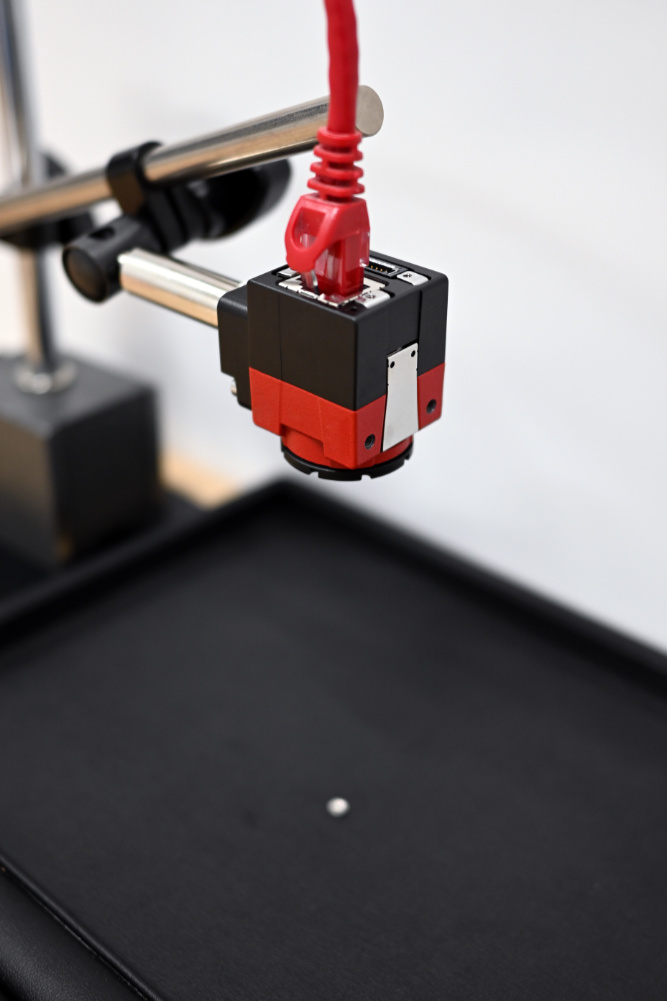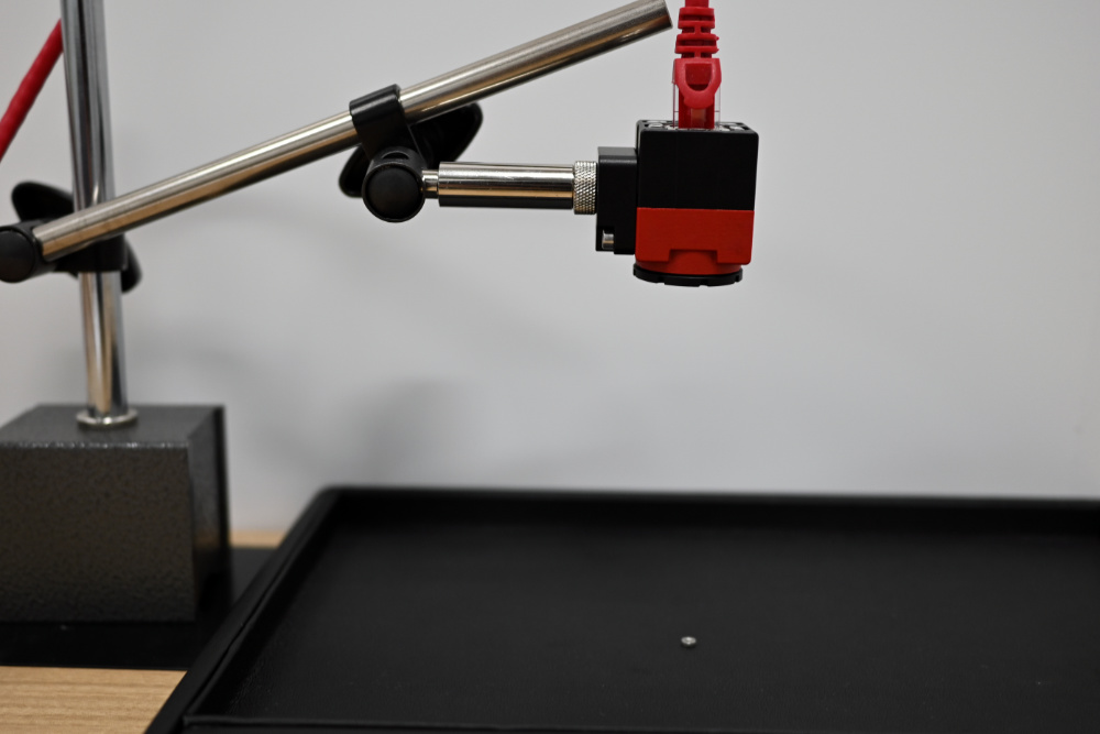 1つの撮像センサーに2つのレンズを搭載した独自構造のステレオカメラを採用しています。レンズ間距離(基線長)を極めて短く設計することで、従来モデルでは困難であった超近距離でのセンシングが可能になりました。この構造により、左右の視差を近距離でも高精度に検出でき、極小物体の寸法を正確に計測できます。