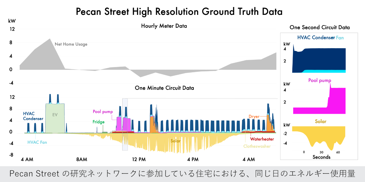 米国 テキサス州 オースティン市 を中心に、住宅に設置されたスマートメーター/IoT メーター から取得された、再生可能エネルギー、電力消費、スマートメーター、EV充電などに関する高解像度の実測データを確認することができます。