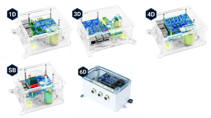 • Raspberry Shake 6D:6成分センサーを統合した高機能モデル。構造物や地盤の同時計測など、特定研究向けに最適